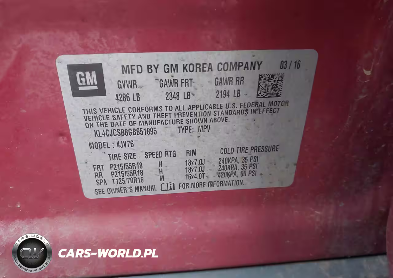 IAAI Nr: I-44555765 VIN: KL4CJCSB8GB651895 Port: Houston, TX