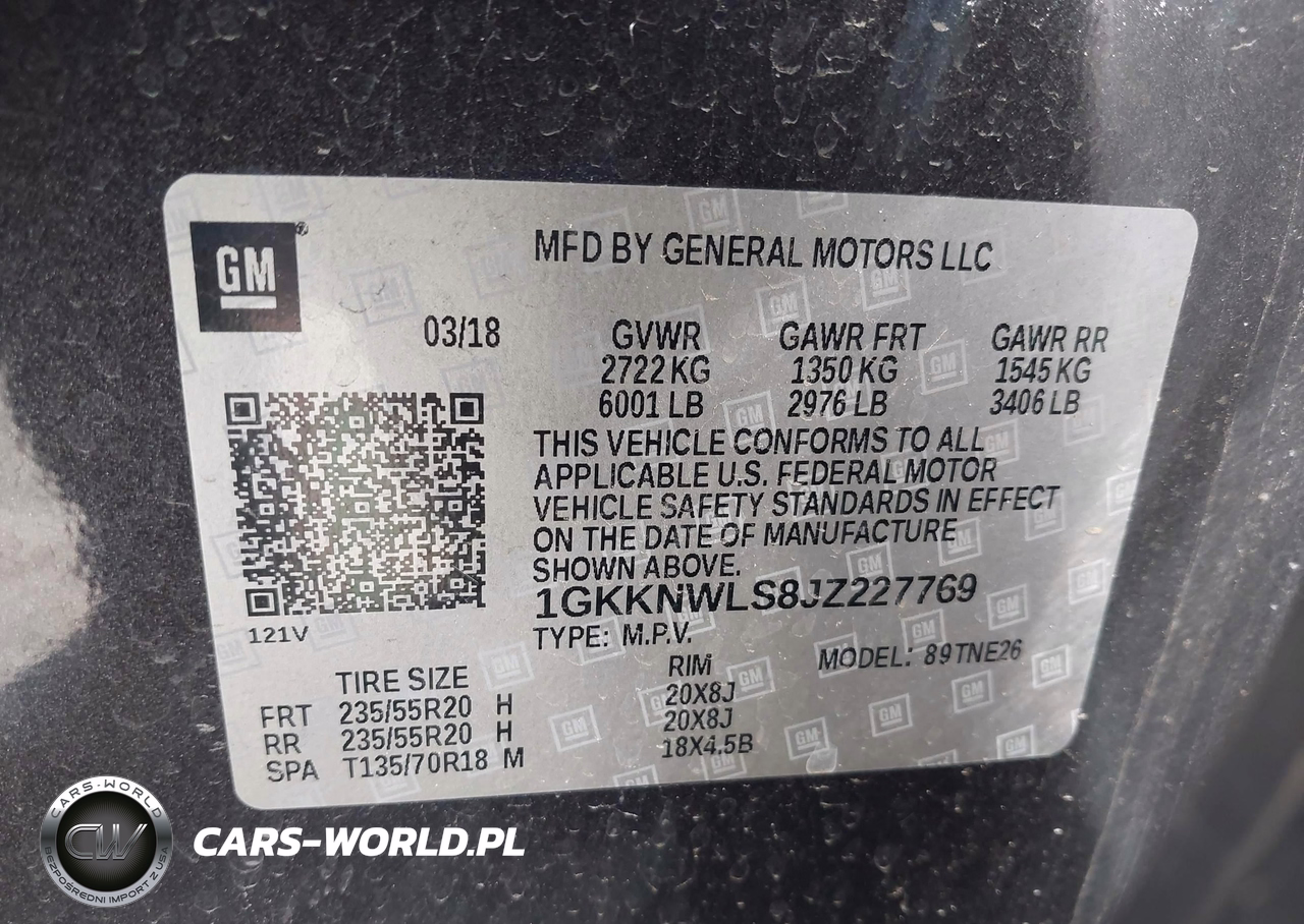 IAAI Nr: I-44556133 VIN: 1GKKNWLS8JZ227769 Port: Los Angeles, CA