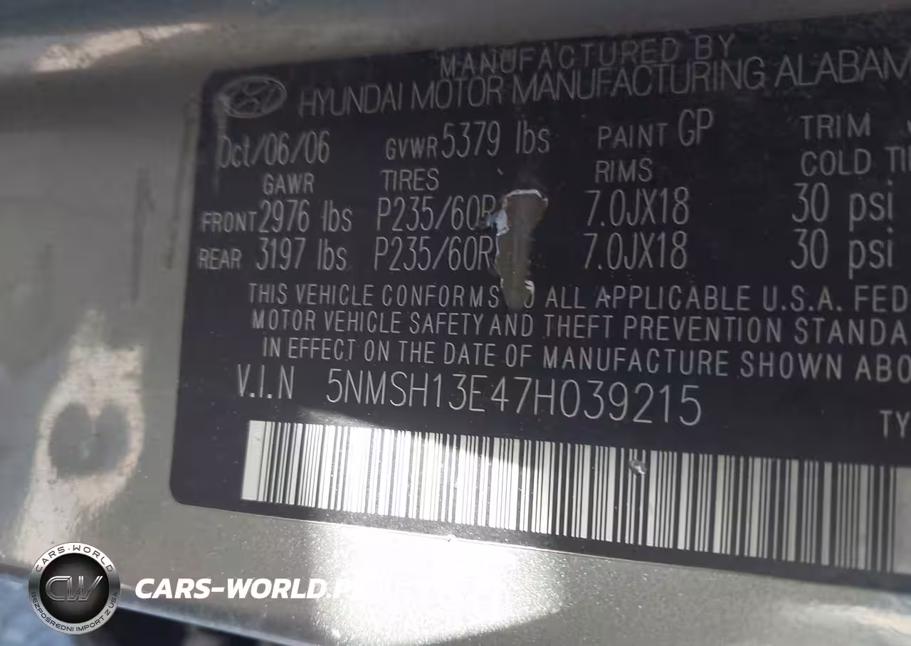 IAAI Nr: I-44556231 VIN: 5NMSH13E47H039215 Port: Los Angeles, CA