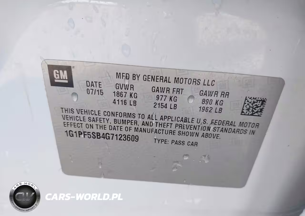 IAAI Nr: I-44556574 VIN: 1G1PF5SB4G7123609 Port: Los Angeles, CA