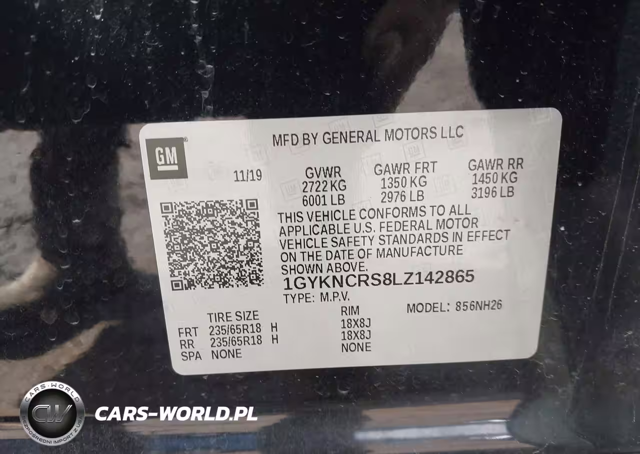 IAAI Nr: I-44557370 VIN: 1GYKNCRS8LZ142865 Port: Elizabeth, NJ