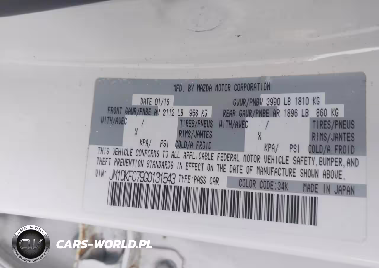 IAAI Nr: I-44557737 VIN: JM1DKFC79G0131543 Port: Elizabeth, NJ