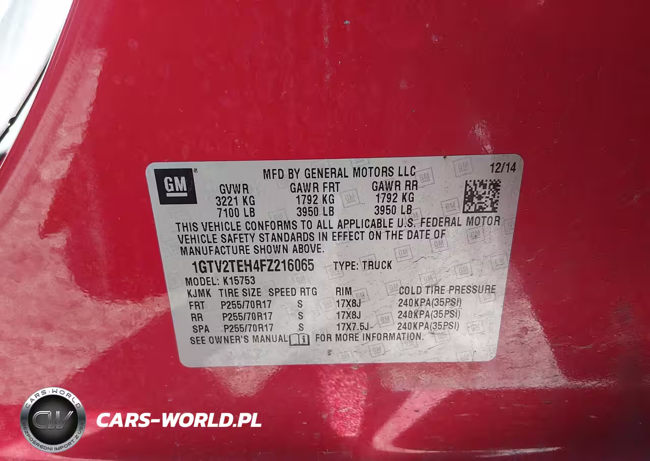 IAAI Nr: I-44557993 VIN: 1GTV2TEH4FZ216065 Port: Elizabeth, NJ