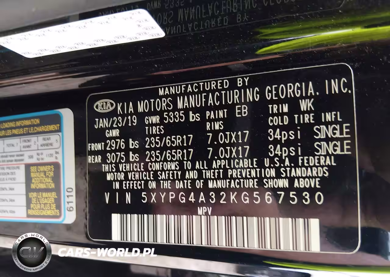 IAAI Nr: I-44558841 VIN: 5XYPG4A32KG567530 Port: Savannah, GA