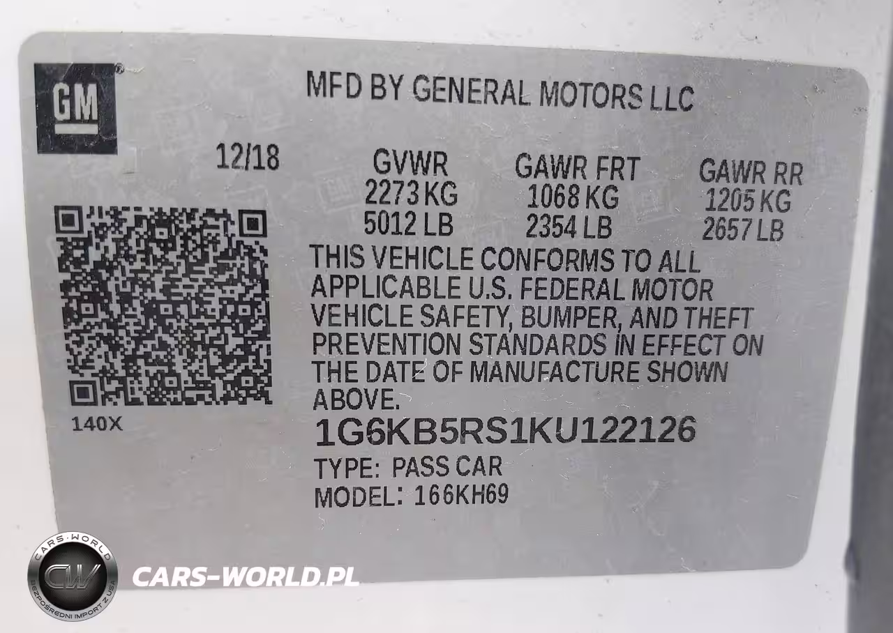 IAAI Nr: I-44560394 VIN: 1G6KB5RS1KU122126 Port: Houston, TX