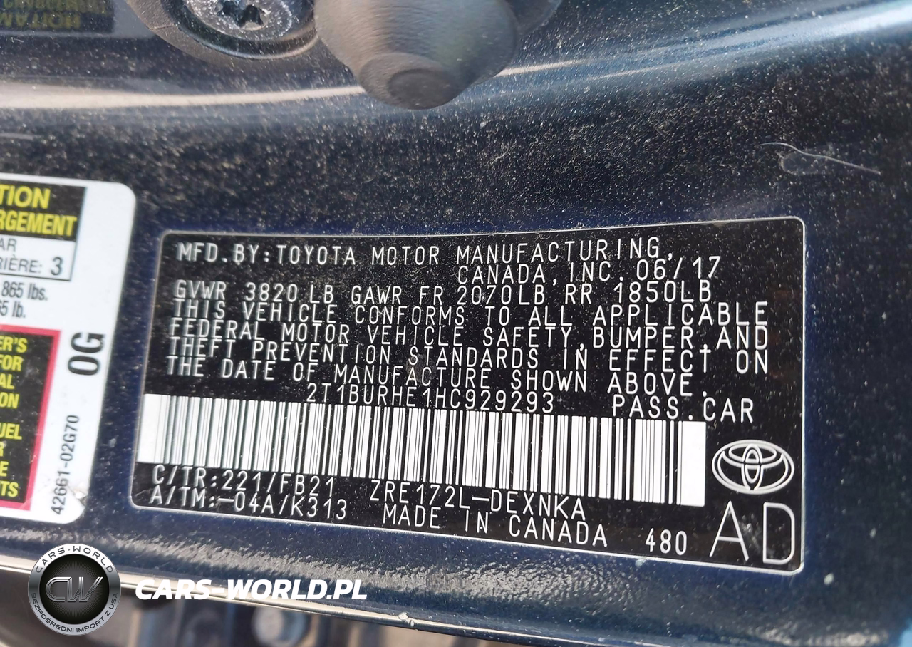 IAAI Nr: I-44561160 VIN: 2T1BURHE1HC929293 Port: Elizabeth, NJ
