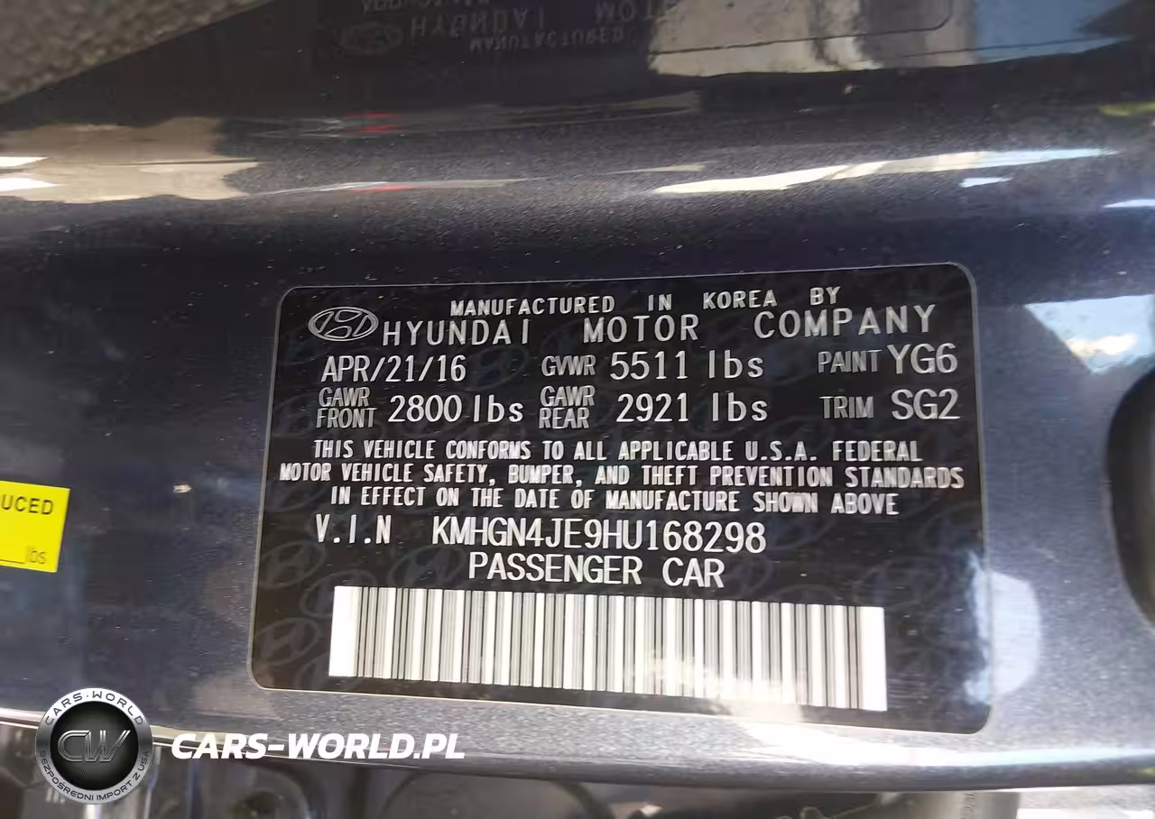 IAAI Nr: I-44561427 VIN: KMHGN4JE9HU168298 Port: Elizabeth, NJ
