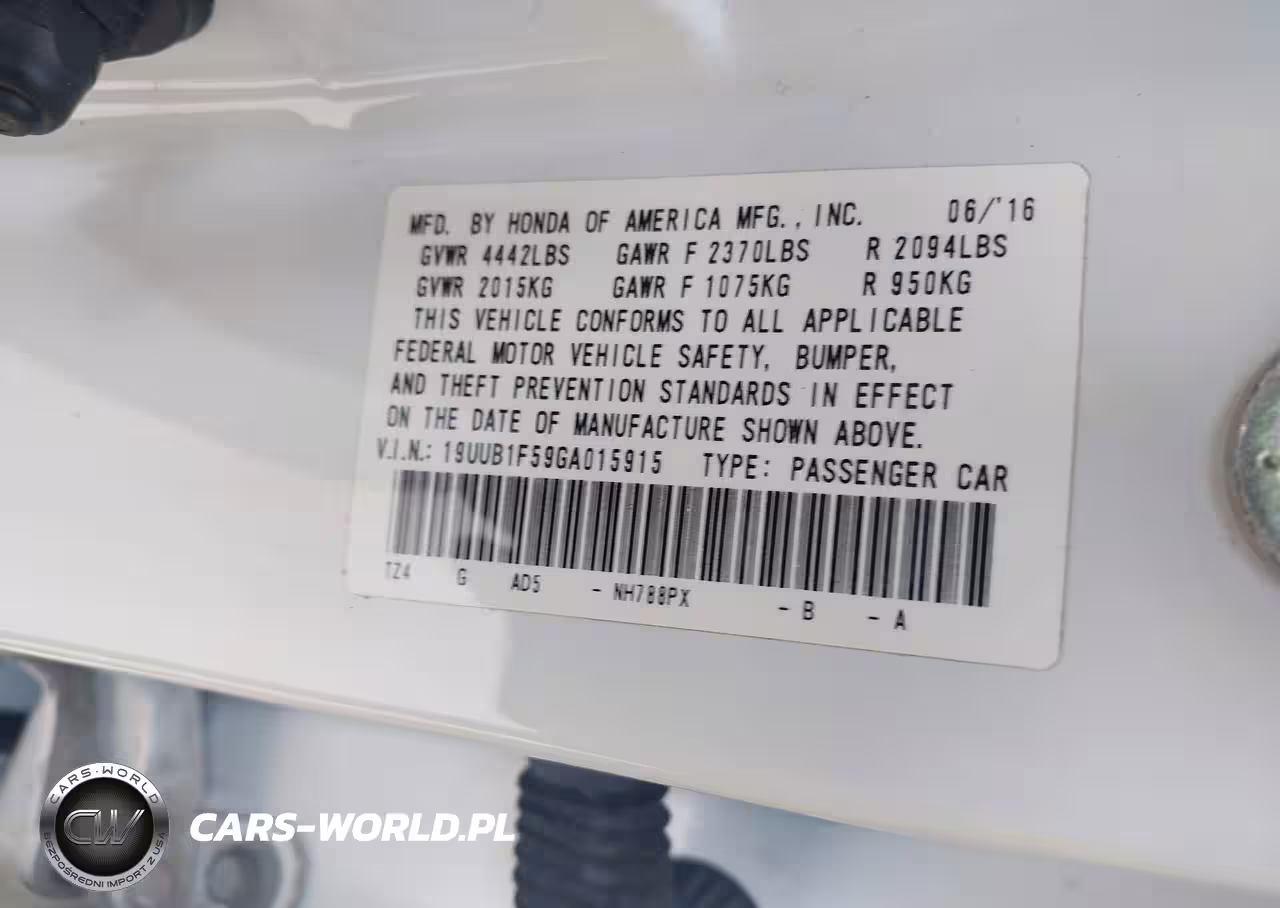 IAAI Nr: I-44561447 VIN: 19UUB1F59GA015915 Port: Houston, TX