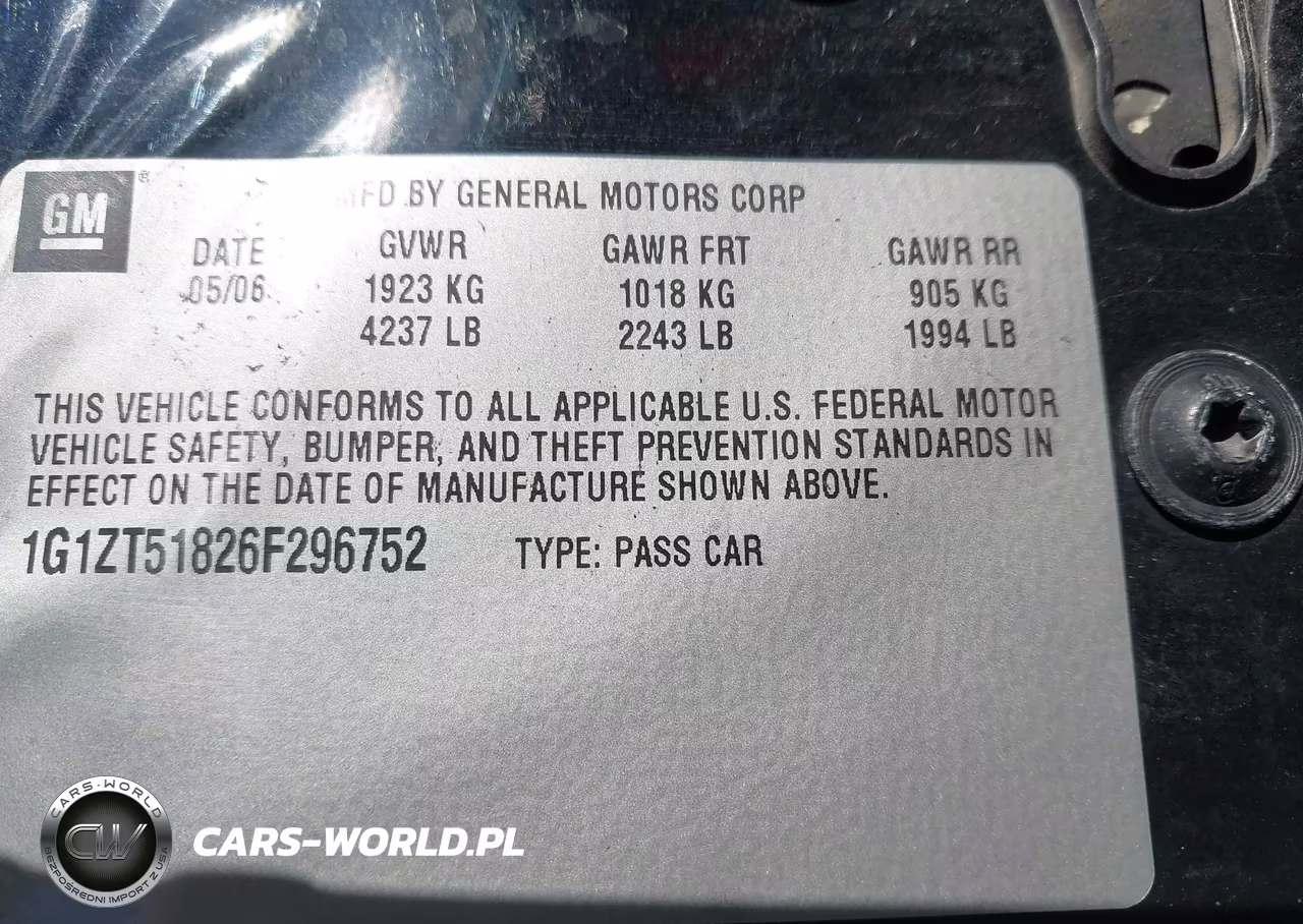 IAAI Nr: I-44561496 VIN: 1G1ZT51826F296752 Port: Indianapolis, IN