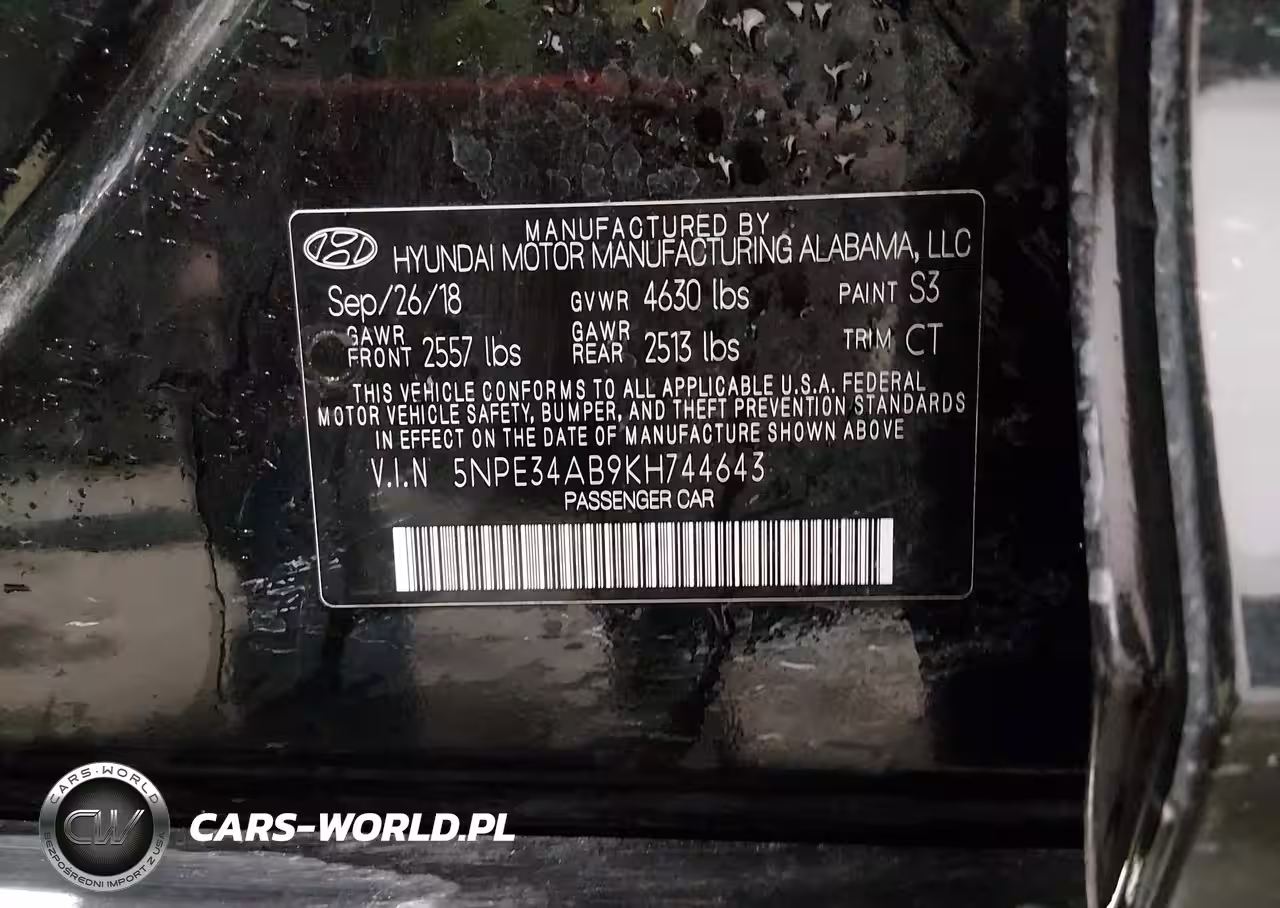 IAAI Nr: I-44562258 VIN: 5NPE34AB9KH744643 Port: Los Angeles, CA