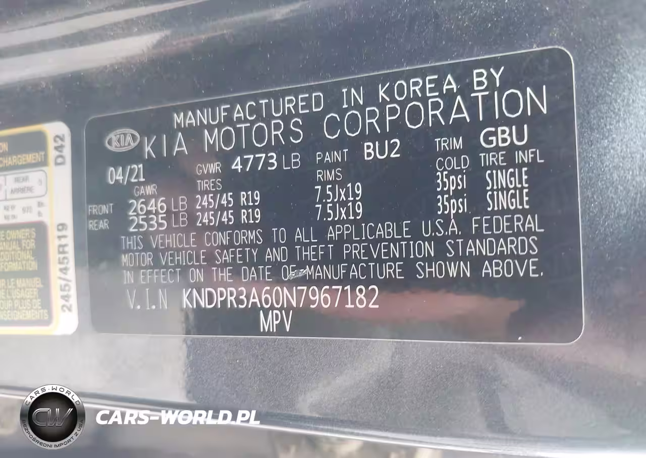 IAAI Nr: I-44562393 VIN: KNDPR3A60N7967182 Port: Los Angeles, CA