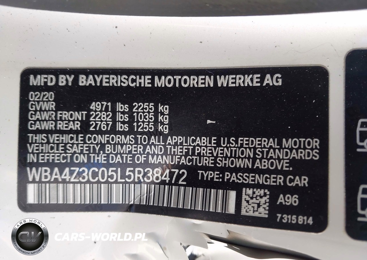 IAAI Nr: I-44562914 VIN: WBA4Z3C05L5R38472 Port: Elizabeth, NJ