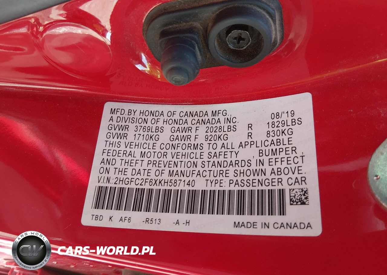 IAAI Nr: I-44563301 VIN: 2HGFC2F6XKH587140 Port: Houston, TX