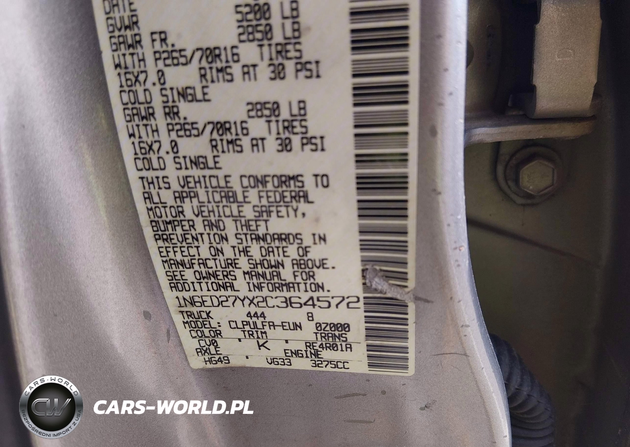IAAI Nr: I-44563470 VIN: 1N6ED27YX2C364572 Port: Savannah, GA
