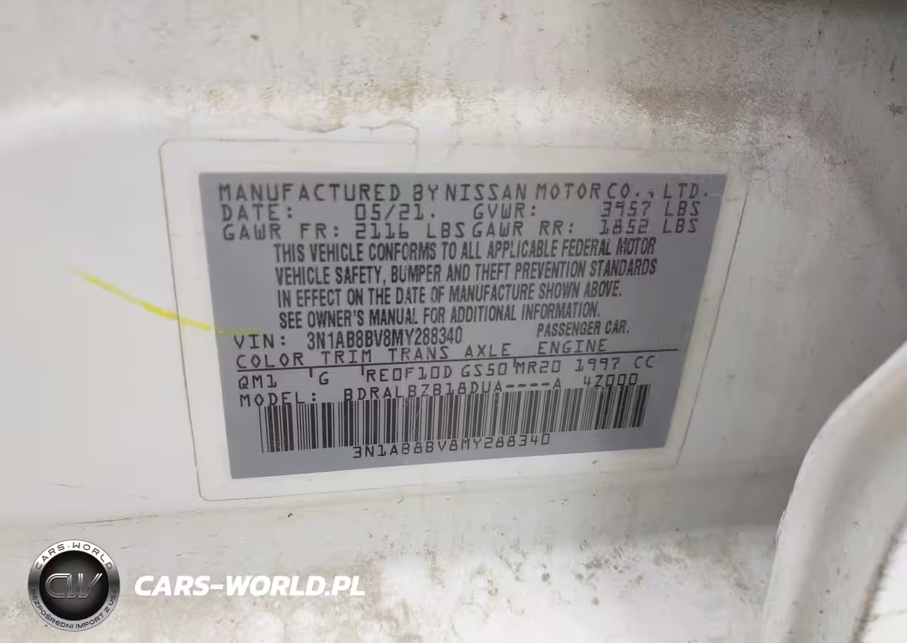 IAAI Nr: I-44563819 VIN: 3N1AB8BV8MY288340 Port: Houston, TX