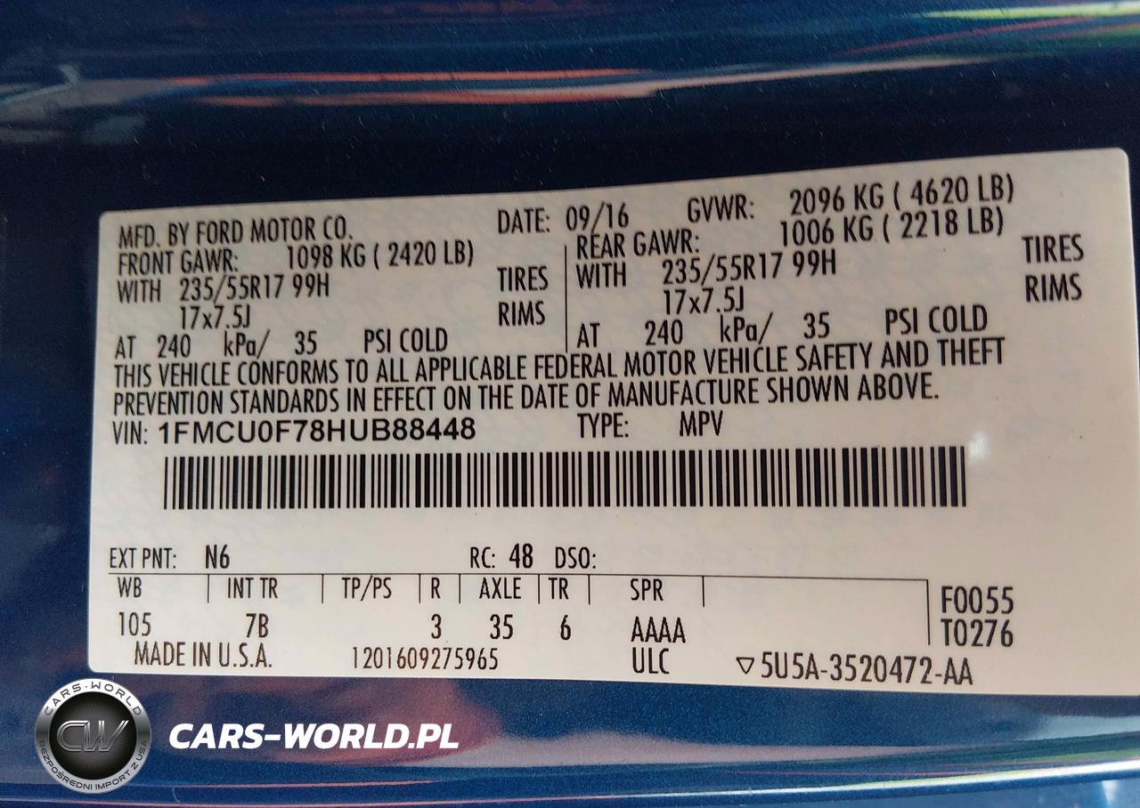 IAAI Nr: I-44564675 VIN: 1FMCU0F78HUB88448 Port: Savannah, GA