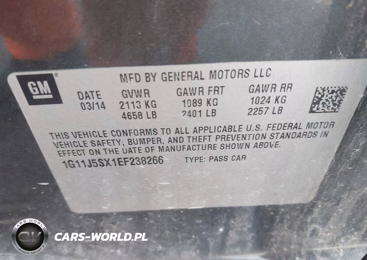 IAAI Nr: I-44565335 VIN: 1G11J5SX1EF238266 Port: Indianapolis, IN