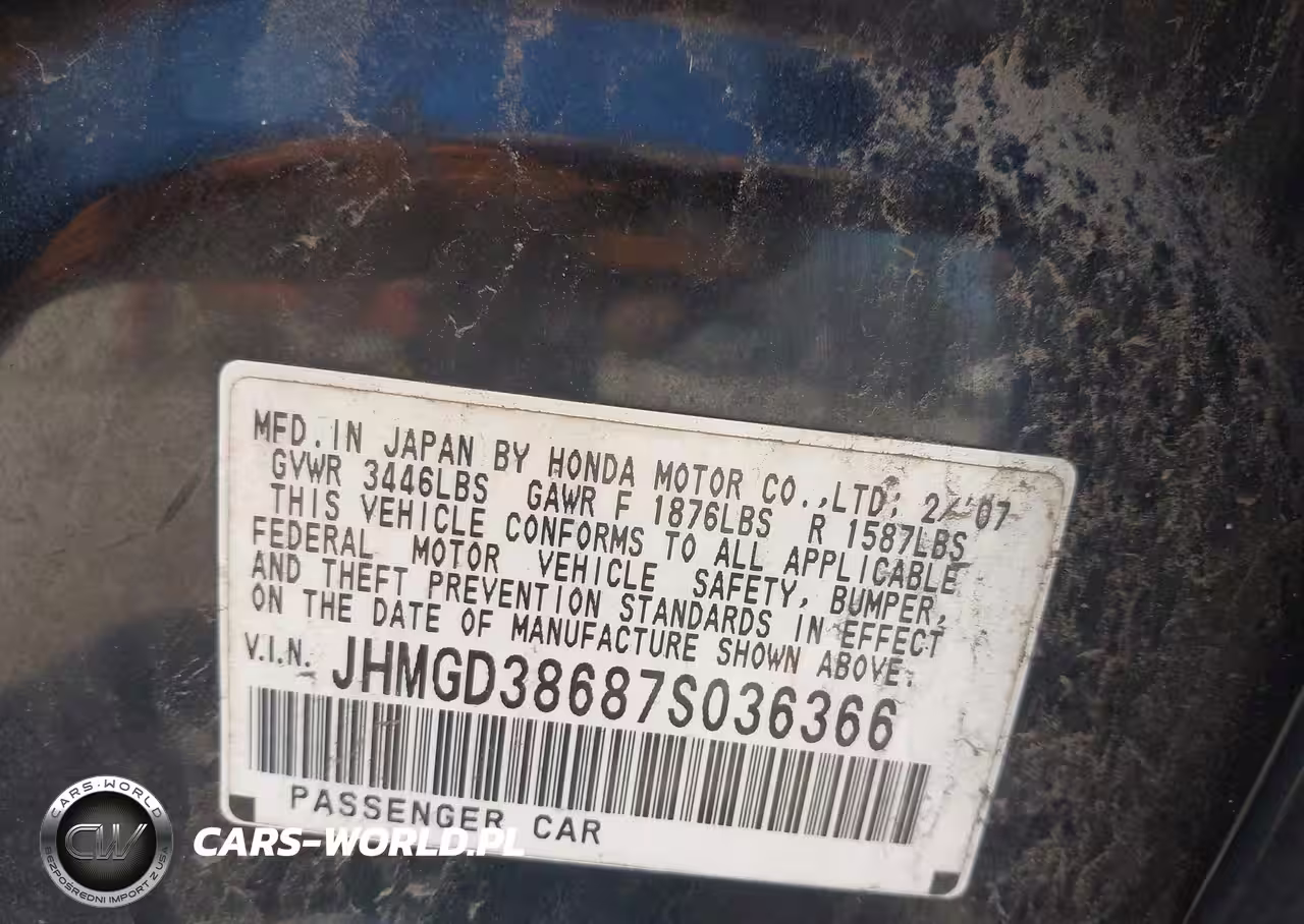 IAAI Nr: I-44565388 VIN: JHMGD38687S036366 Port: Houston, TX