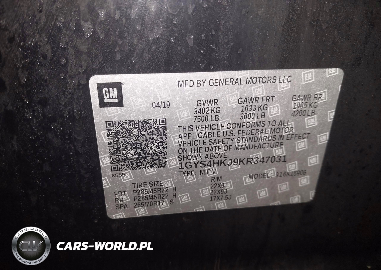 IAAI Nr: I-44565908 VIN: 1GYS4HKJ9KR347031 Port: Elizabeth, NJ