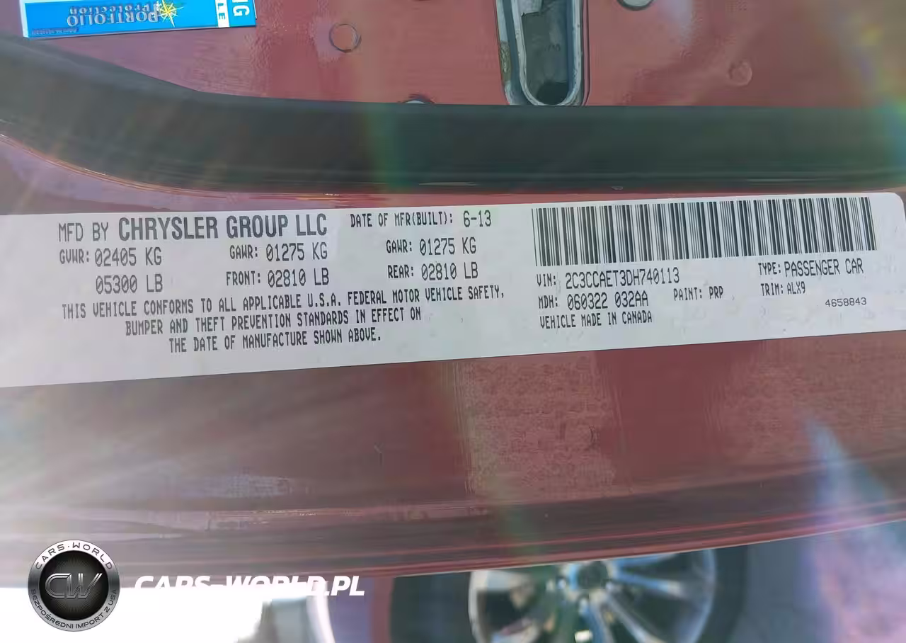 IAAI Nr: I-44565957 VIN: 2C3CCAET3DH740113 Port: Los Angeles, CA