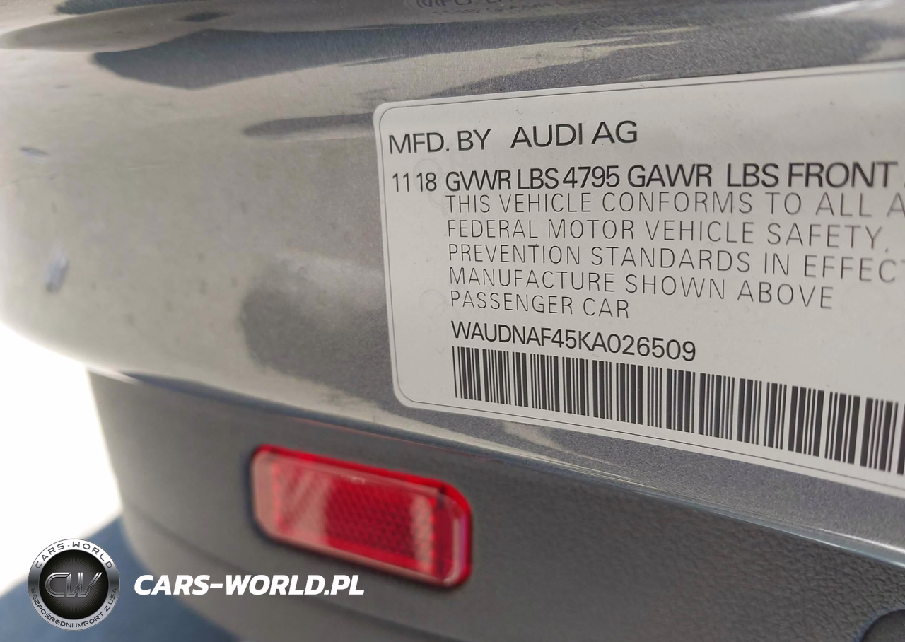 IAAI Nr: I-44568537 VIN: WAUDNAF45KA026509 Port: Elizabeth, NJ