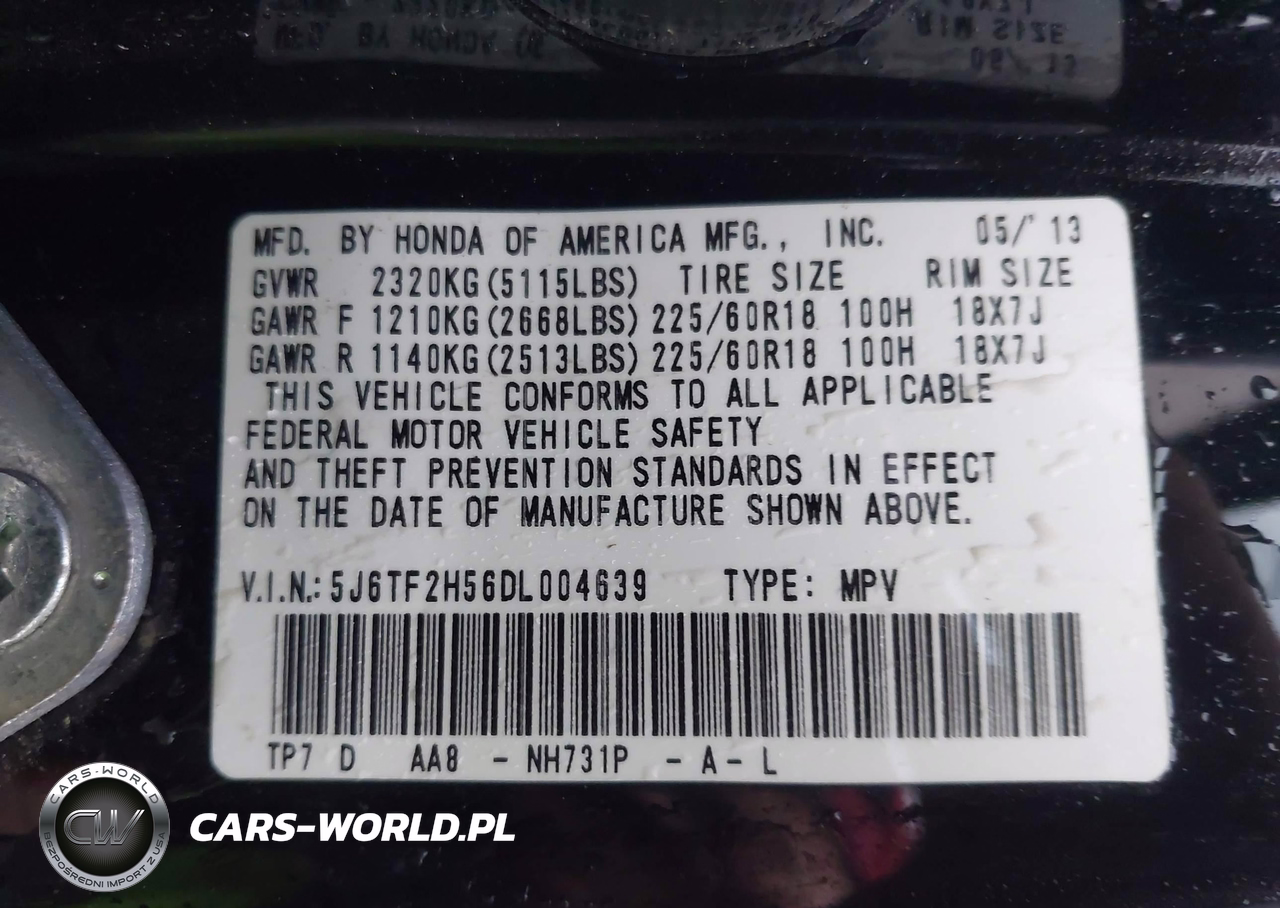 IAAI Nr: I-44568709 VIN: 5J6TF2H56DL004639 Port: Indianapolis, IN