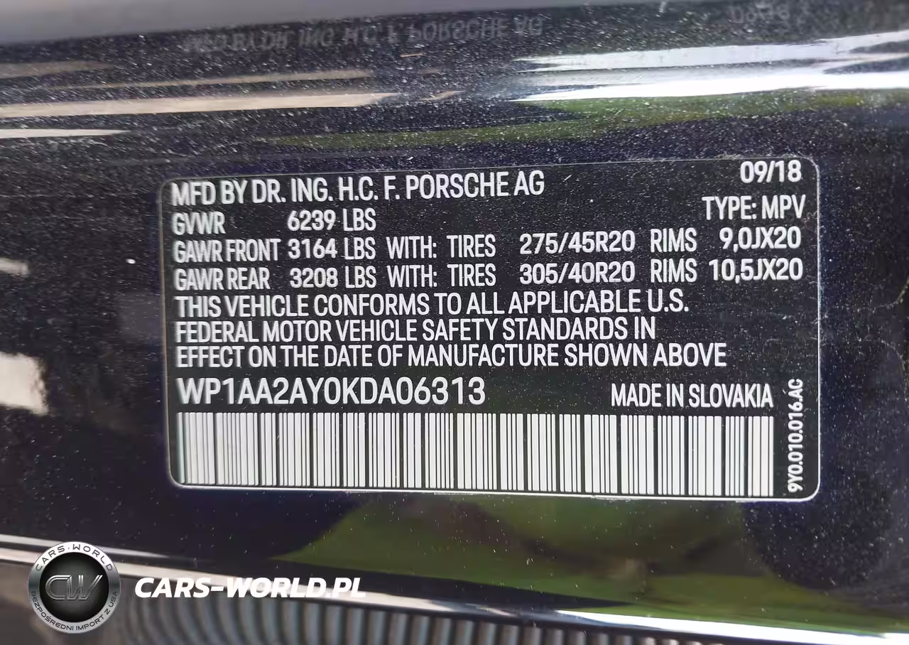 IAAI Nr: I-44569495 VIN: WP1AA2AY0KDA06313 Port: Savannah, GA
