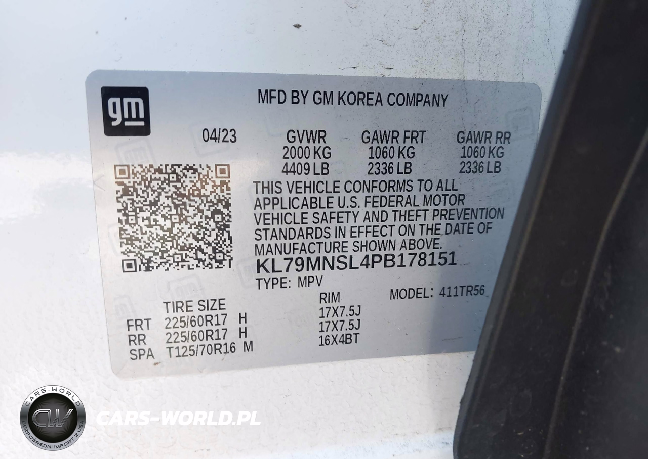 IAAI Nr: I-44569974 VIN: KL79MNSL4PB178151 Port: Savannah, GA
