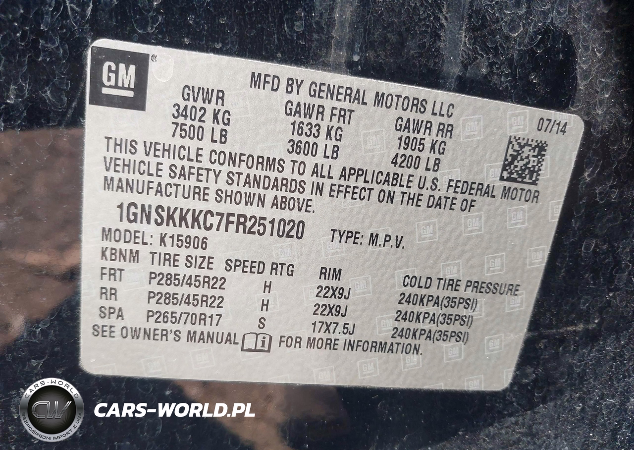 IAAI Nr: I-44570210 VIN: 1GNSKKKC7FR251020 Port: Elizabeth, NJ