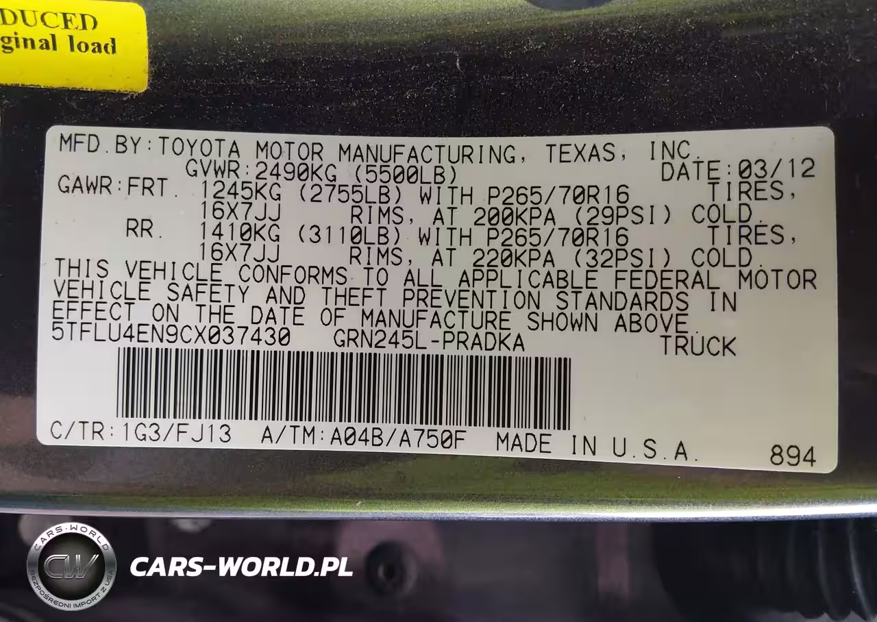 IAAI Nr: I-44571571 VIN: 5TFLU4EN9CX037430 Port: Houston, TX