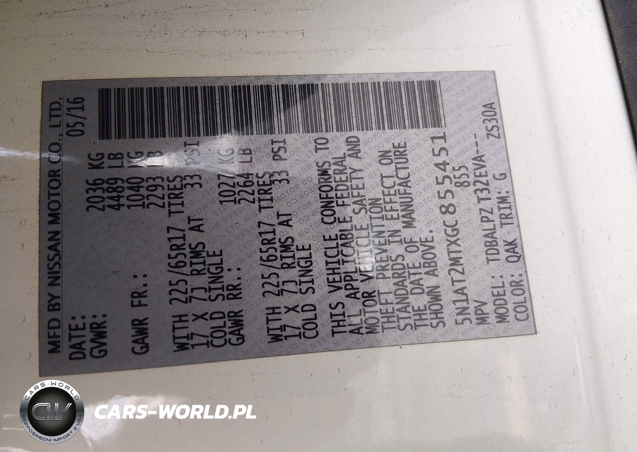 IAAI Nr: I-44571702 VIN: 5N1AT2MTXGC855451 Port: Los Angeles, CA