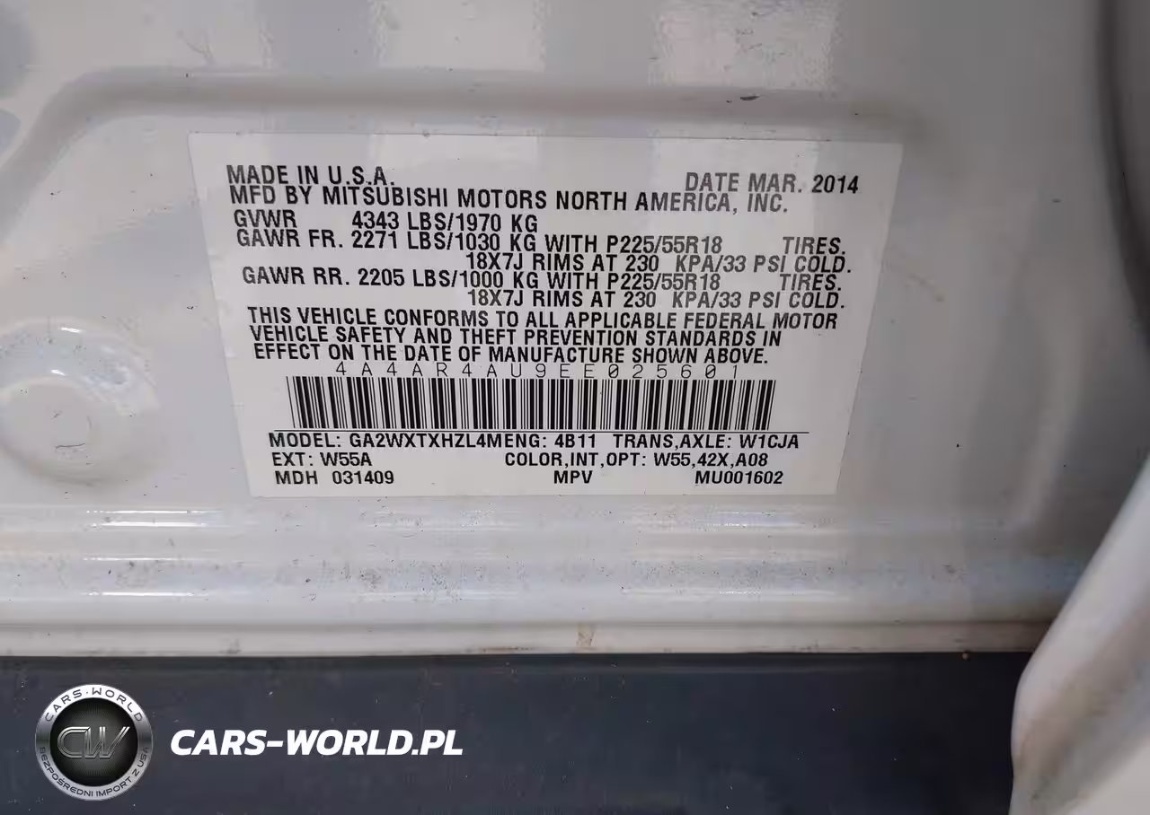 IAAI Nr: I-44571712 VIN: 4A4AR4AU9EE025601 Port: Savannah, GA