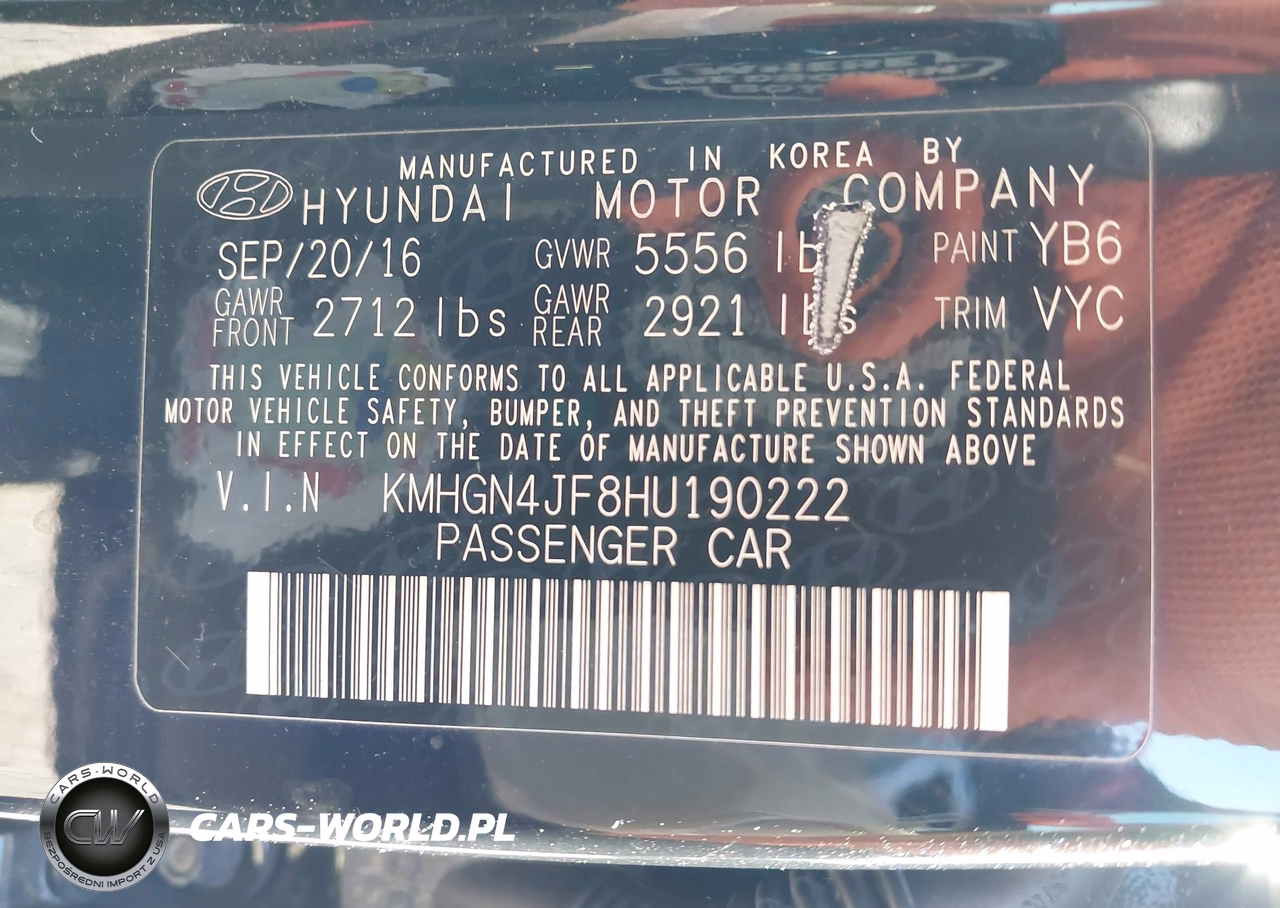 IAAI Nr: I-44572060 VIN: KMHGN4JF8HU190222 Port: Elizabeth, NJ