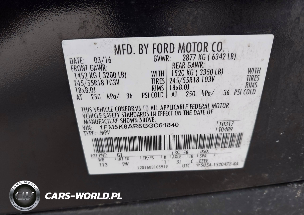 IAAI Nr: I-44572062 VIN: 1FM5K8AR8GGC61840 Port: Indianapolis, IN