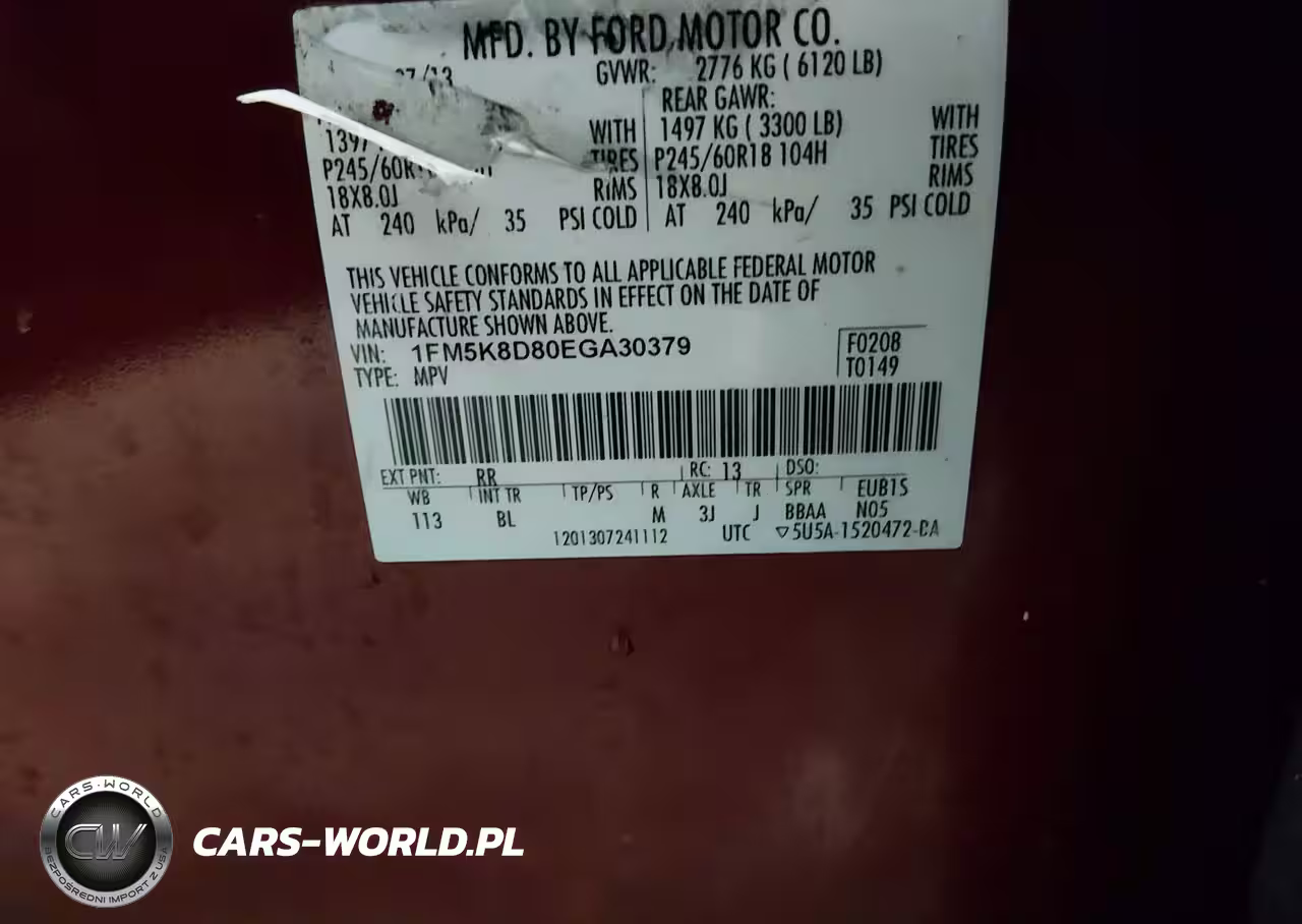 IAAI Nr: I-44572161 VIN: 1FM5K8D80EGA30379 Port: Elizabeth, NJ