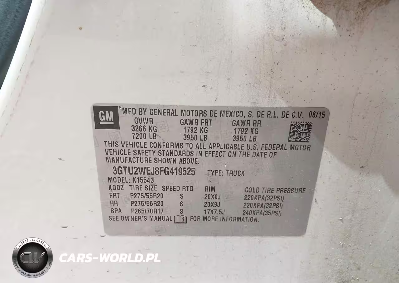 IAAI Nr: I-44572371 VIN: 3GTU2WEJ8FG419525 Port: Savannah, GA