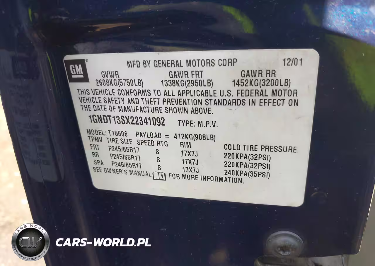 IAAI Nr: I-44573200 VIN: 1GNDT13SX22341092 Port: Elizabeth, NJ