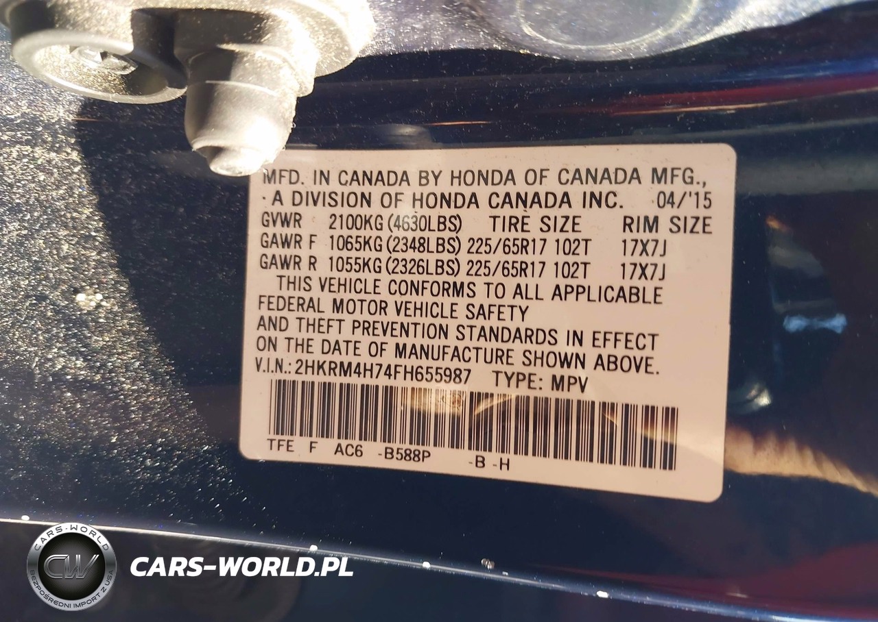 IAAI Nr: I-44574061 VIN: 2HKRM4H74FH655987 Port: Elizabeth, NJ