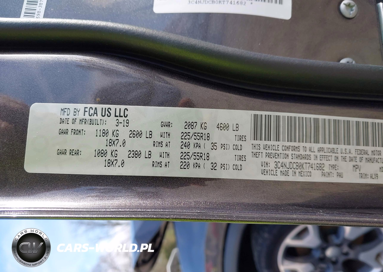 IAAI Nr: I-44574379 VIN: 3C4NJDCB0KT741682 Port: Savannah, GA