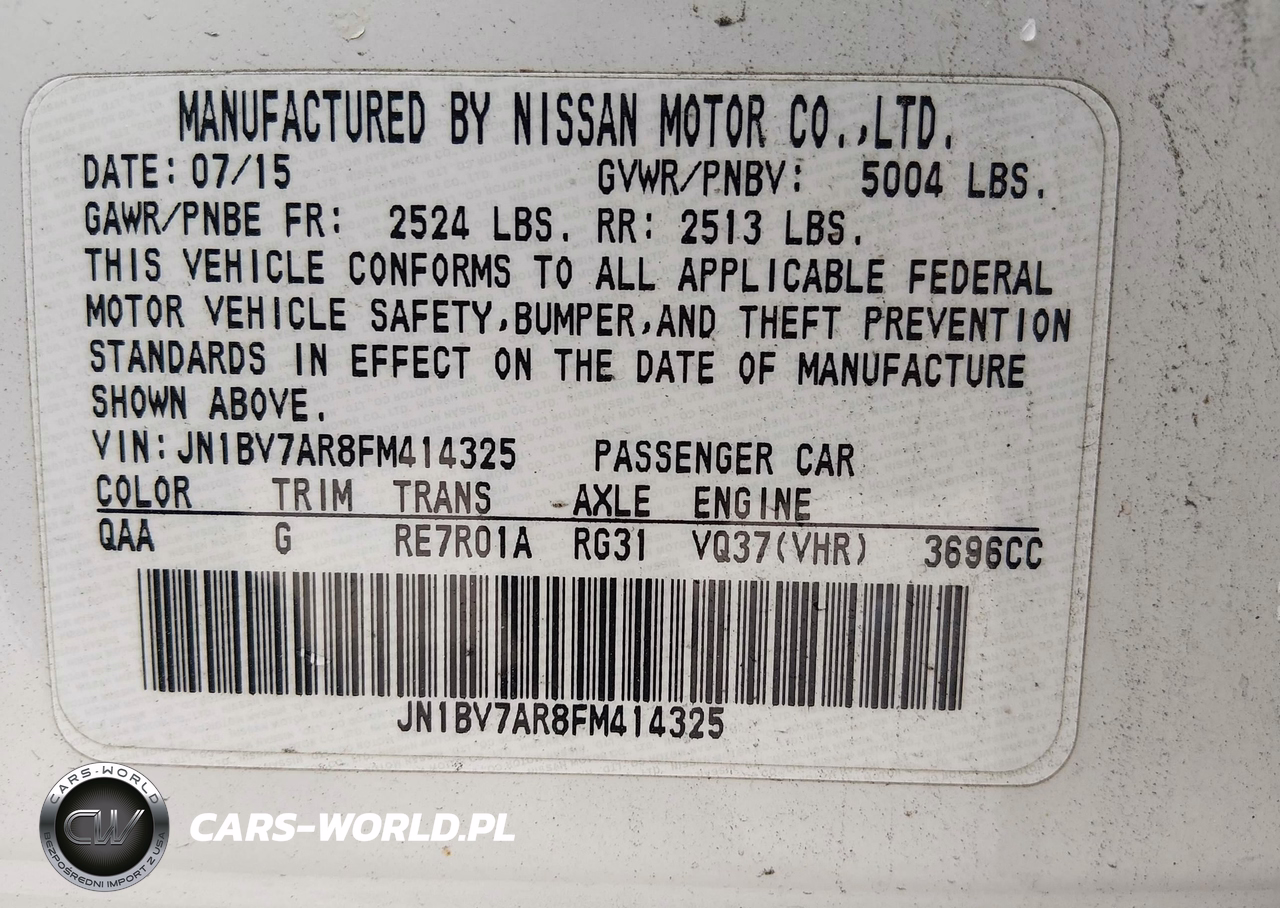 IAAI Nr: I-44574443 VIN: JN1BV7AR8FM414325 Port: Elizabeth, NJ