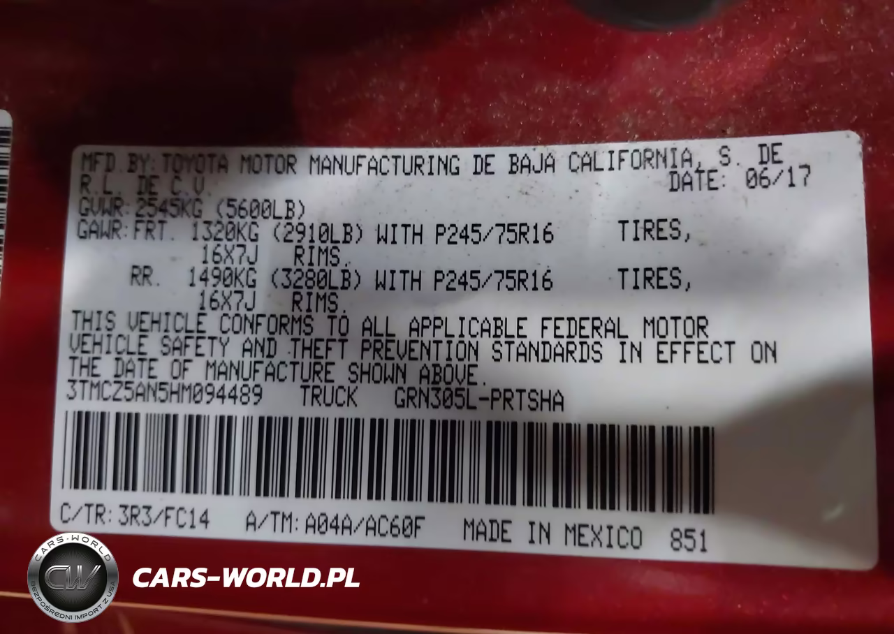 IAAI Nr: I-44574678 VIN: 3TMCZ5AN5HM094489 Port: Indianapolis, IN