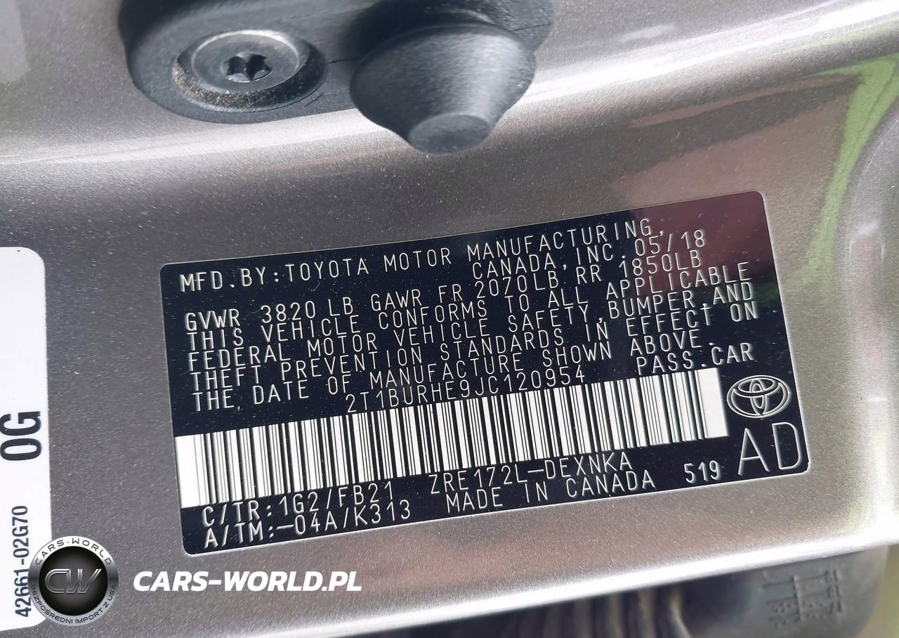 IAAI Nr: I-44574915 VIN: 2T1BURHE9JC120954 Port: Houston, TX