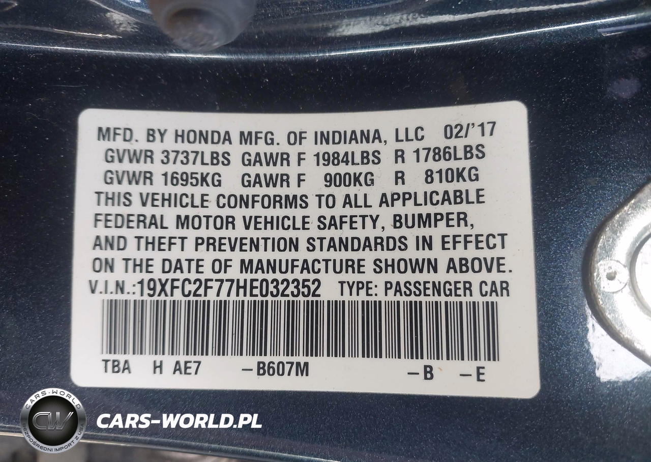 IAAI Nr: I-44575556 VIN: 19XFC2F77HE032352 Port: Savannah, GA