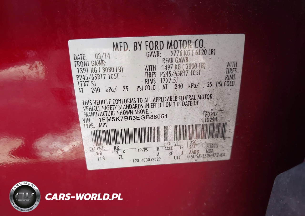 IAAI Nr: I-44575759 VIN: 1FM5K7B83EGB88051 Port: Elizabeth, NJ
