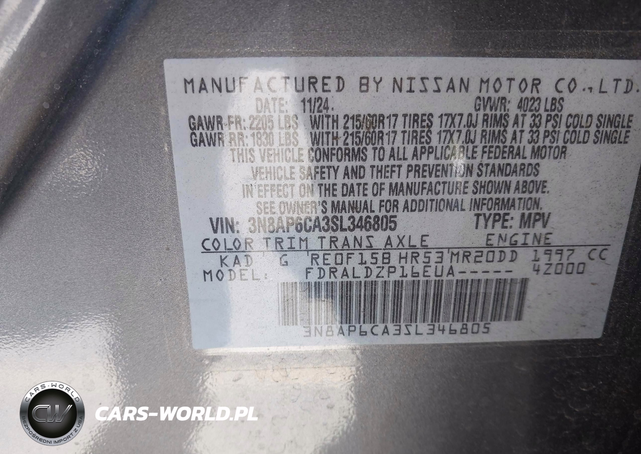 IAAI Nr: I-44576237 VIN: 3N8AP6CA3SL346805 Port: Los Angeles, CA