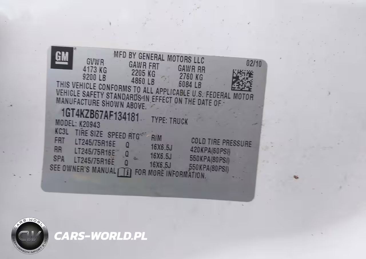 IAAI Nr: I-44576434 VIN: 1GT4KZB67AF134181 Port: Indianapolis, IN