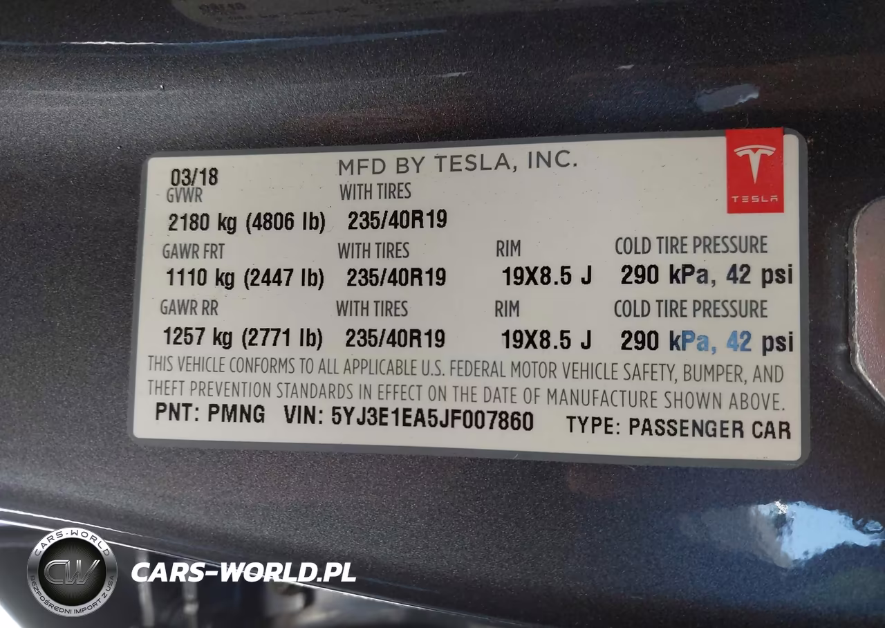 IAAI Nr: I-44576936 VIN: 5YJ3E1EA5JF007860 Port: Los Angeles, CA