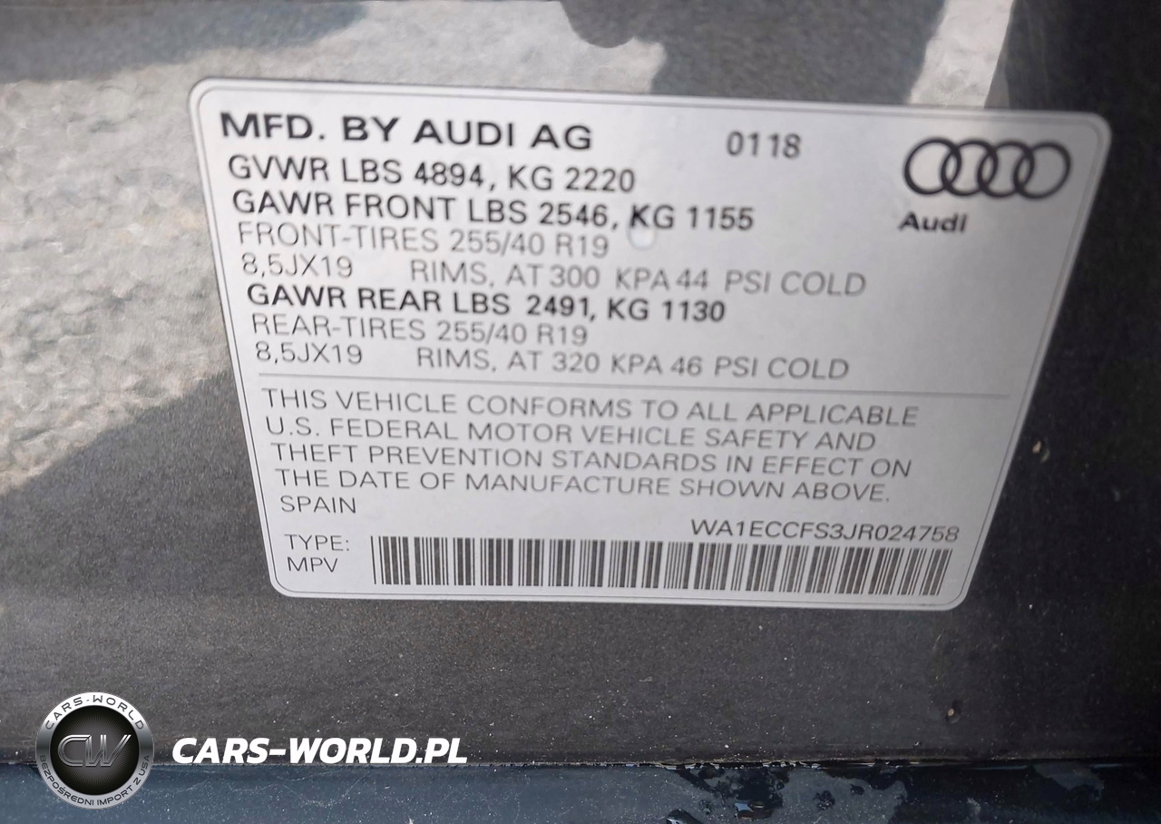 IAAI Nr: I-44577046 VIN: WA1ECCFS3JR024758 Port: Savannah, GA