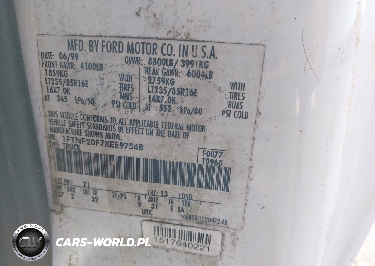 IAAI Nr: I-44577624 VIN: 1FTNF20F7XEE97548 Port: Indianapolis, IN