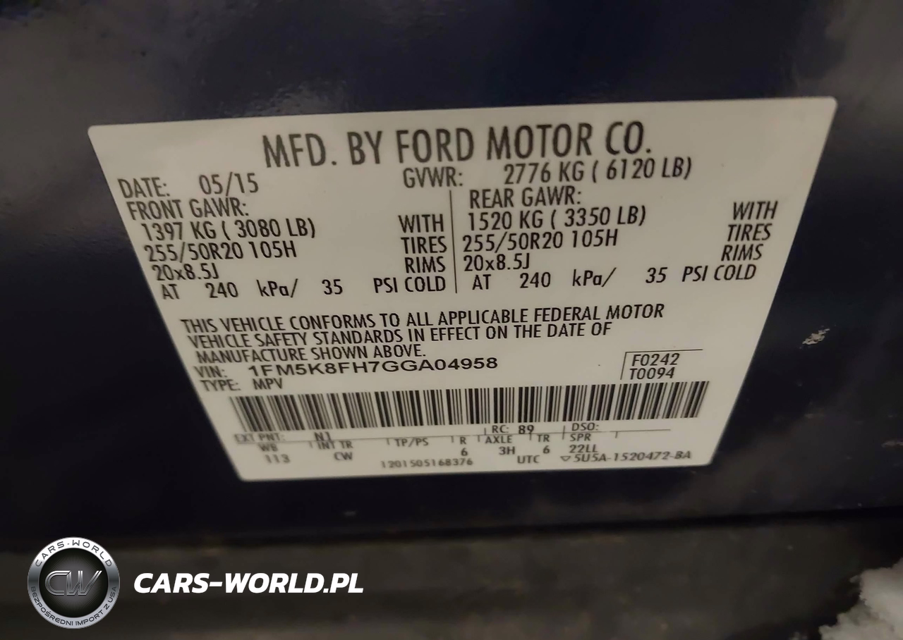 IAAI Nr: I-44577675 VIN: 1FM5K8FH7GGA04958 Port: Indianapolis, IN